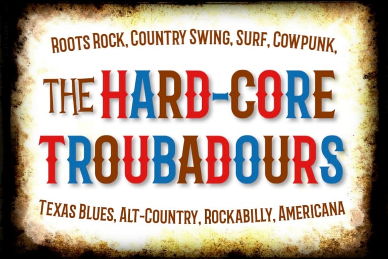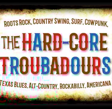 In 1997-2002, the Hard-Core Troubadours played a variety of roots rock, country swing, surf, cowpunk, Texas blues, alt country, and rockabilly songs. We moved on to other bands but kept in touch and reunited for special events. In 2023, we realized we missed the songs and playing together, so we fired up the band again and added a bunch of new material. Our sets are still filled with danceable, toe-tapping tunes. Follow this page to see us live around the DC metro area. We look forward to seeing you! --Kevin, Jimi, Louie, and Andy